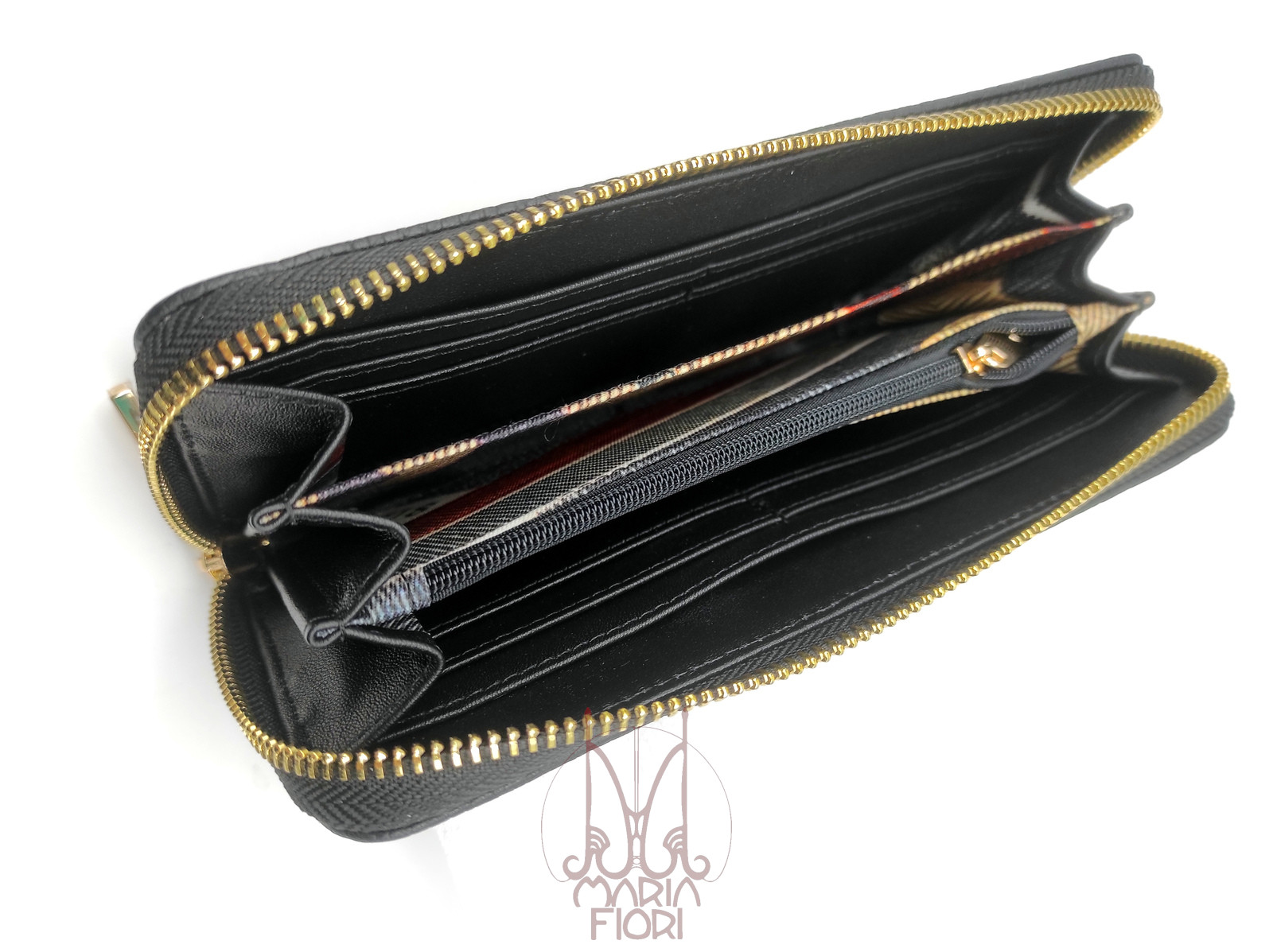 Struttura: 3 soffietti – 8 slot porta carte – 1 scompartimento zip – 2 scompartimenti generici/banconote