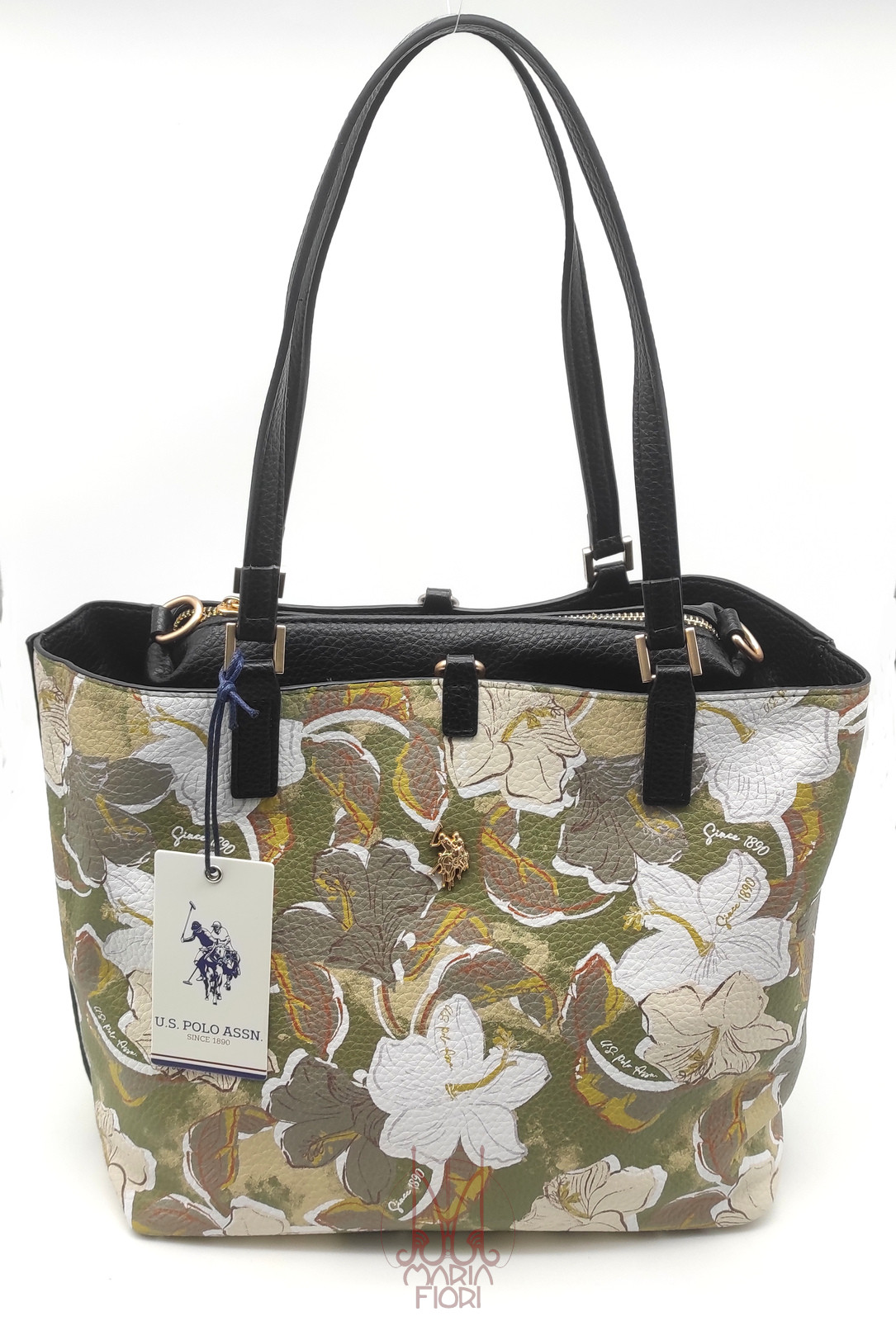 U.S. POLO Borsa Shopping Rogersville M Reversibile 3 in 1 – Floreal+Nero