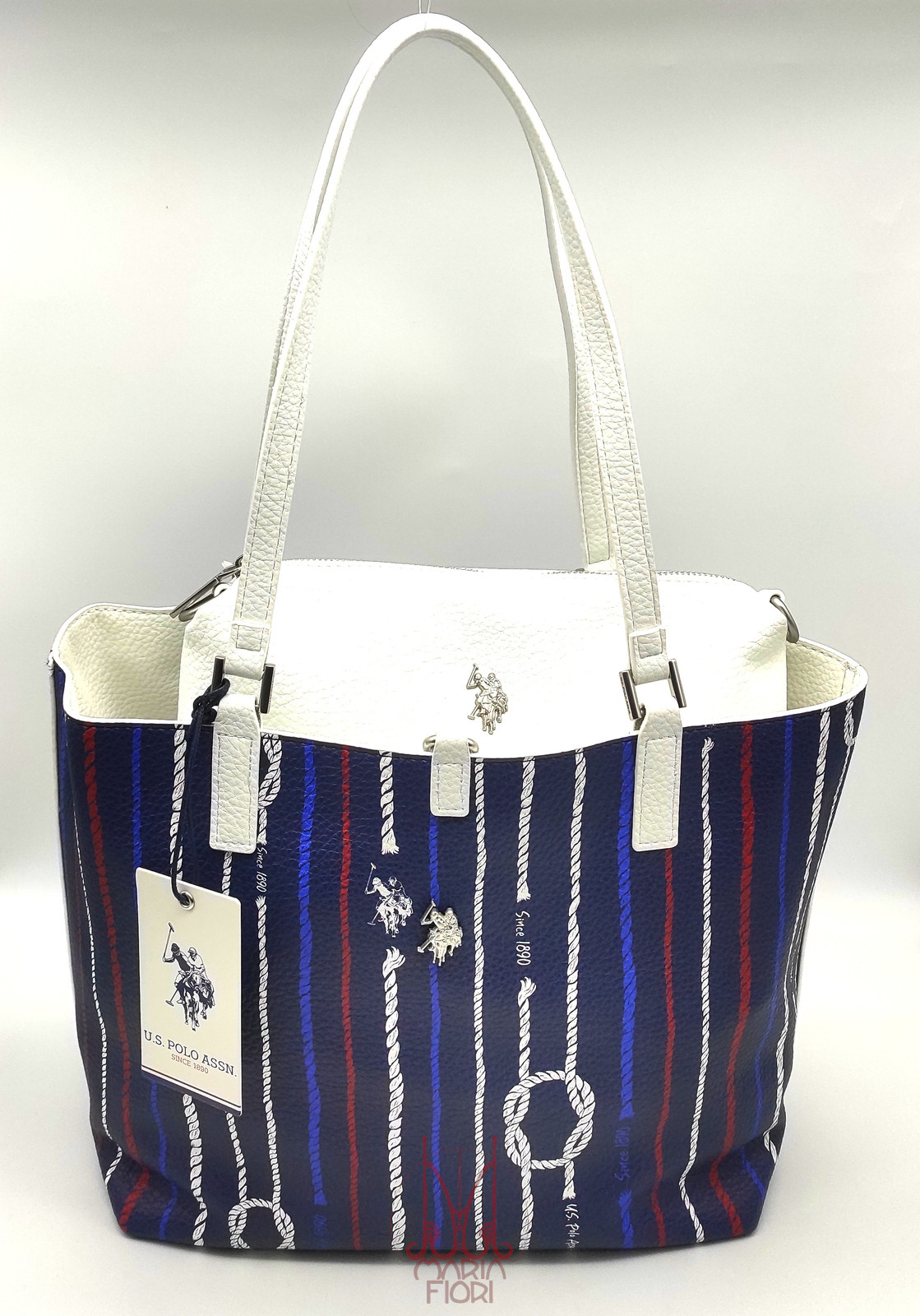 U.S. POLO Borsa Shopping Rogersville M Reversibile 3 in 1 – Rope+Bianco